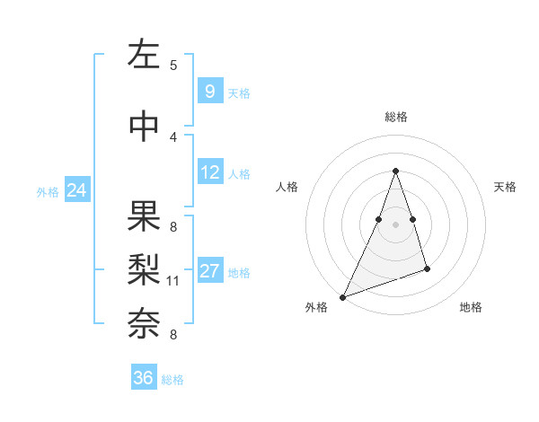 左中 果梨奈さんを姓名の画数から五運を鑑定