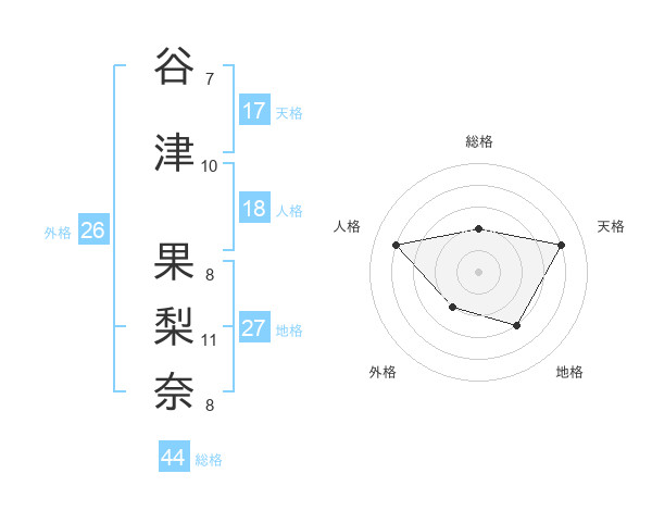 谷津 果梨奈さんを姓名の画数から五運を鑑定