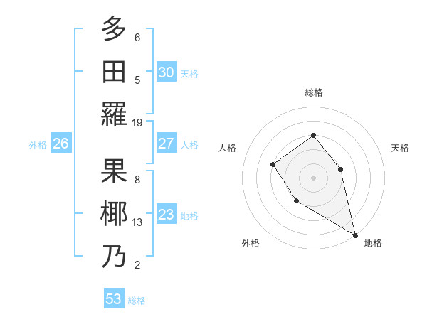 多田羅 果椰乃さんの総格は53画の3点!