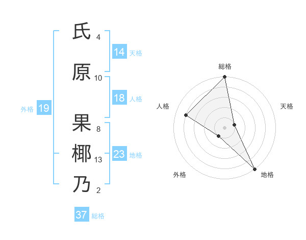 氏原 果椰乃さんの総格は37画の5点!