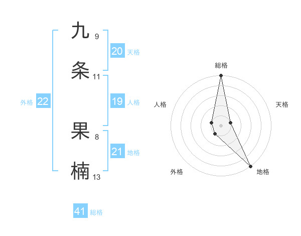 九条 果楠さんの外格は22画の1点!