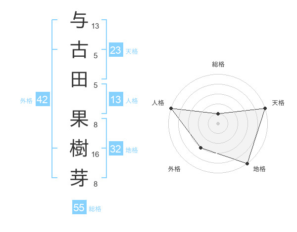 与古田 果樹芽さんを姓名の画数から五運を鑑定