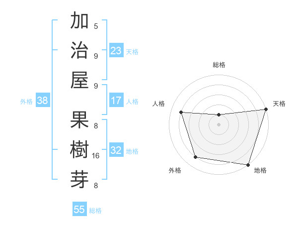 加治屋 果樹芽さんを姓名の画数から五運を鑑定