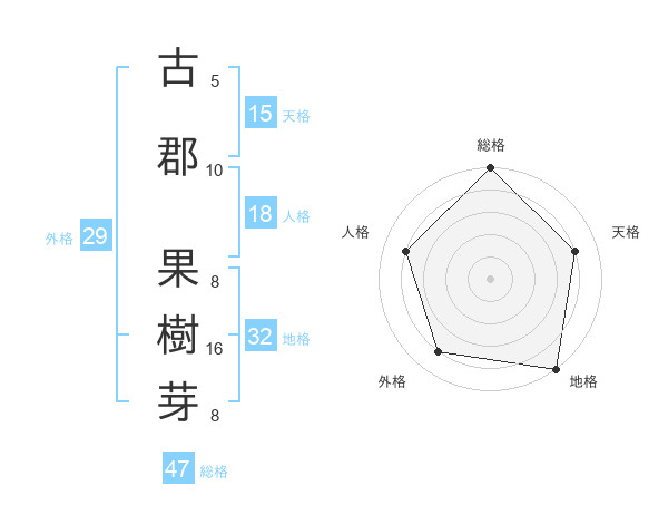 古郡 果樹芽さんを姓名の画数から五運を鑑定