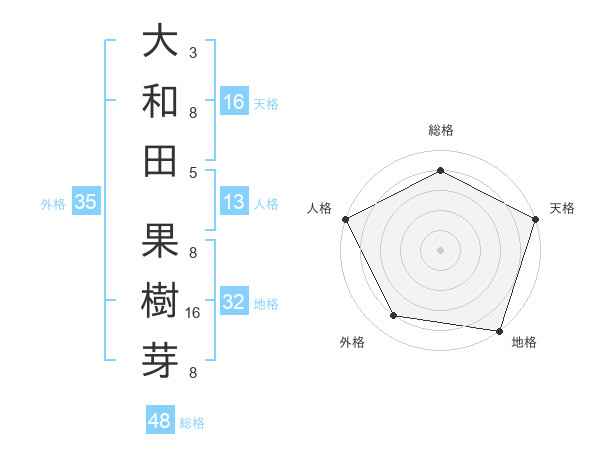 大和田 果樹芽さんを姓名の画数から五運を鑑定