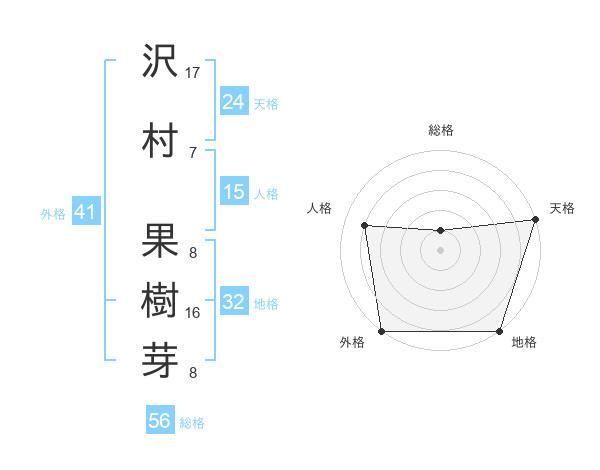 沢村 果樹芽さんを姓名の画数から五運を鑑定