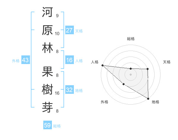 河原林 果樹芽さんを姓名の画数から五運を鑑定