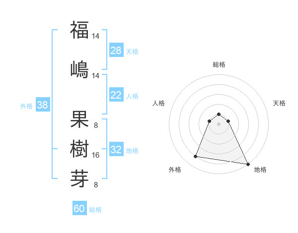 福嶋 果樹芽さんを姓名の画数から五運を鑑定