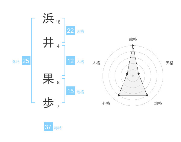 浜井 果歩さんの総格は37画の5点!