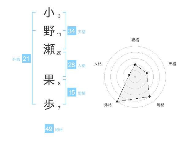 小野瀬 果歩さんを姓名の画数から五運を鑑定