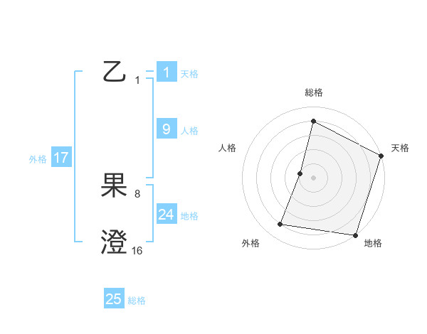 乙 果澄さんの総格は25画の4点!