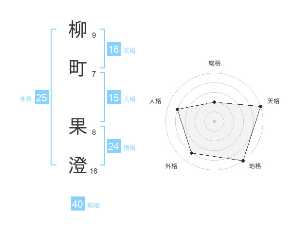 柳町 果澄さんの天格は16画の5点!