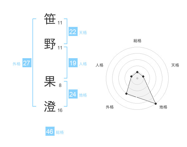 笹野 果澄さんを姓名の画数から五運を鑑定
