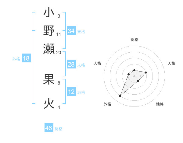小野瀬 果火さんを姓名の画数から五運を鑑定