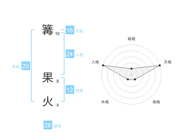 篝 果火さんの天格は16画の5点!
