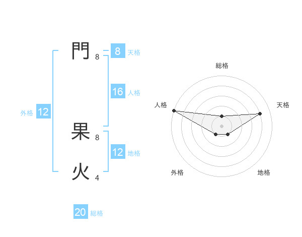 門 果火さんの総格は20画の1点!