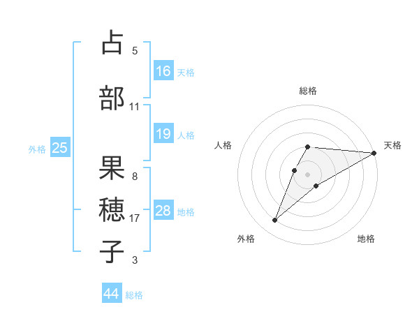 占部 果穂子さんを姓名の画数から五運を鑑定