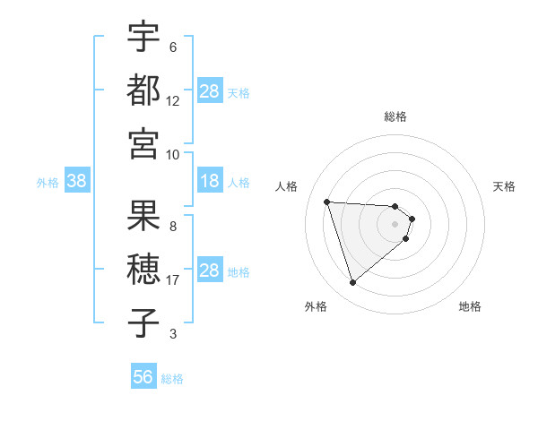 宇都宮 果穂子さんを姓名の画数から五運を鑑定