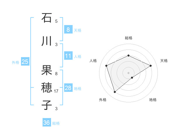 石川 果穂子さんを姓名の画数から五運を鑑定