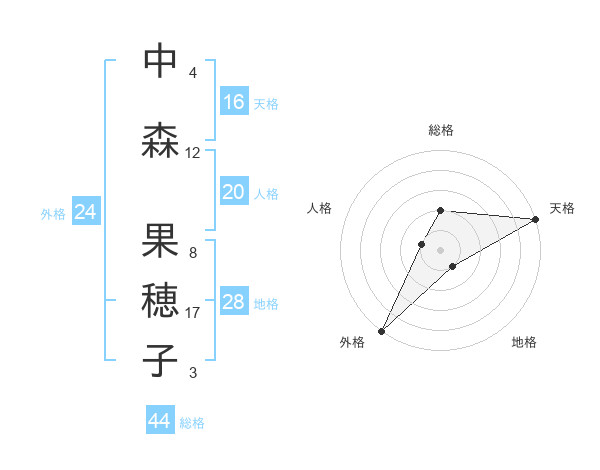 中森 果穂子さんを姓名の画数から五運を鑑定