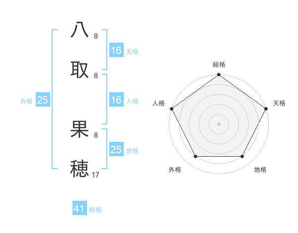 八取 果穂さんの地格は25画の4点!