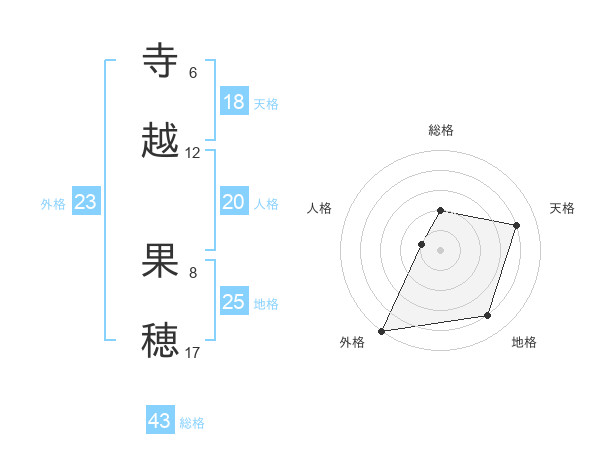 寺越 果穂さんの外格は23画の5点!
