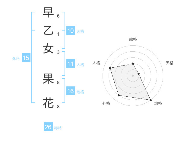 早乙女 果花さんの総格は26画の2点