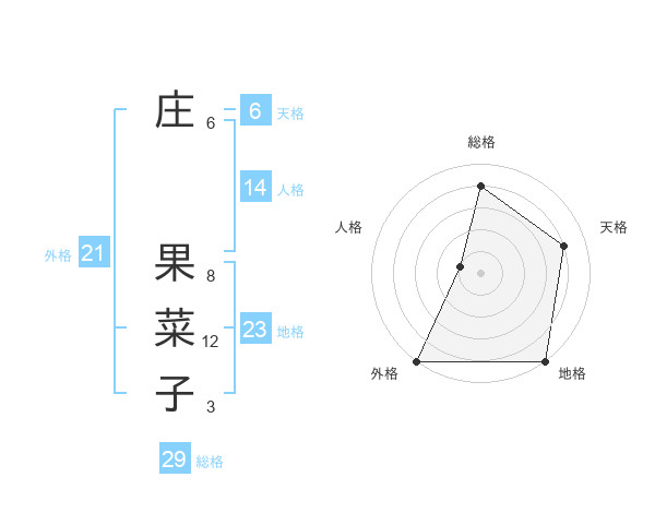 庄 果菜子さんの総格は29画の4点!