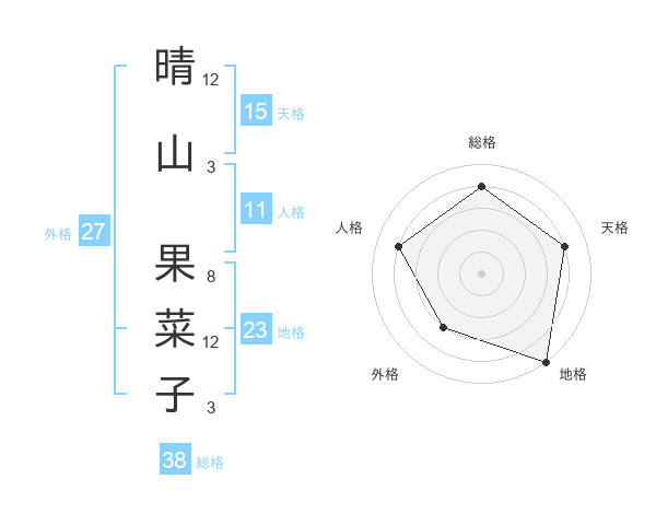 晴山 果菜子さんを姓名の画数から五運を鑑定
