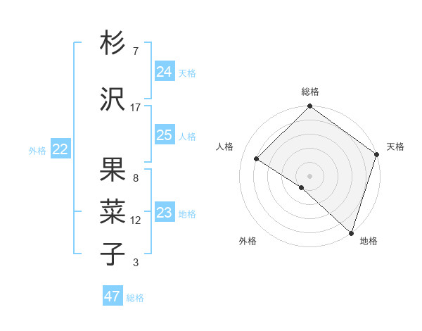 杉沢 果菜子さんを姓名の画数から五運を鑑定