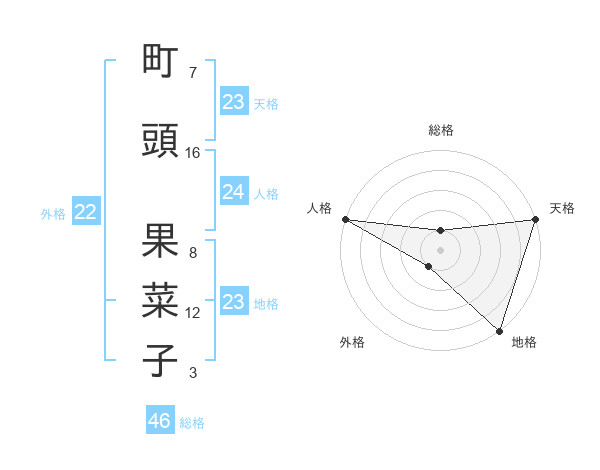 町頭 果菜子さんの天格は23画の5点!