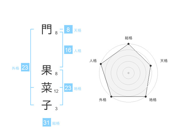 門 果菜子さんの外格は23画の5点!