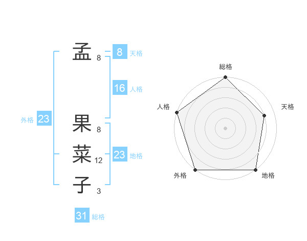 孟 果菜子さんの総格は31画の5点!
