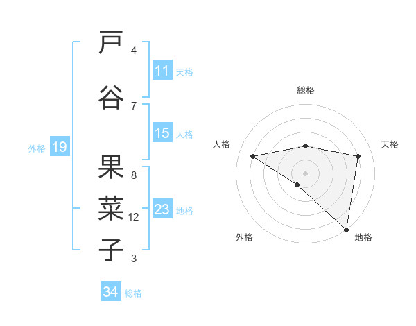 戸谷 果菜子さんの地格は23画の5点!