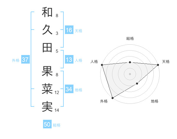 和久田 果菜実さんを姓名の画数から五運を鑑定