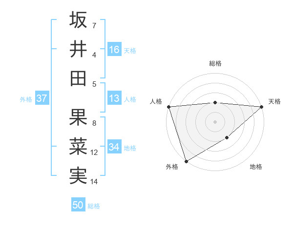 坂井田 果菜実さんの天格は16画の5点!