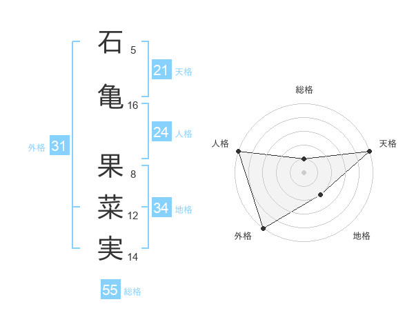 石亀 果菜実さんの天格は21画の5点!