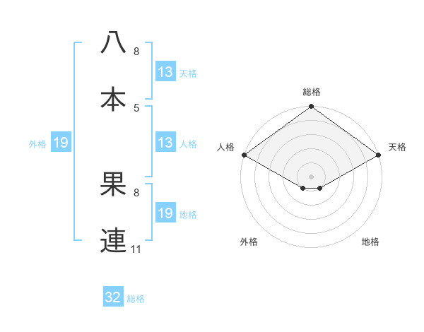 八本 果連さんの天格は13画の5点!