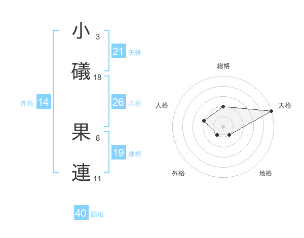 小礒 果連さんの総格は40画の2点!