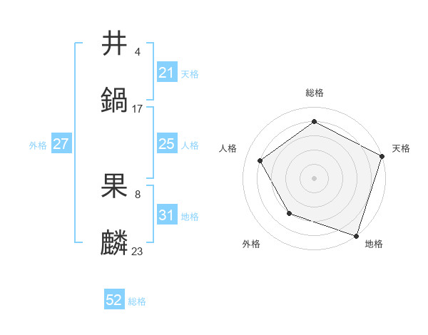 井鍋 果麟さんを姓名の画数から五運を鑑定