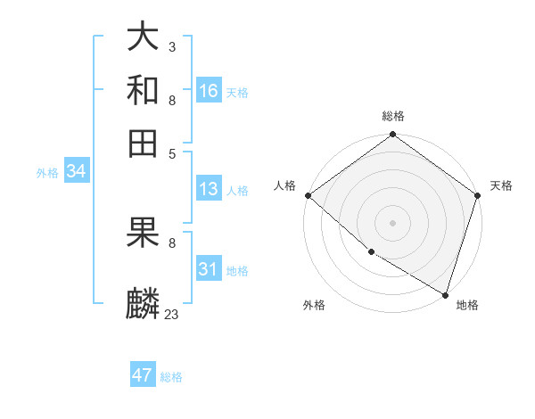 大和田 果麟さんの総格は47画の5点!