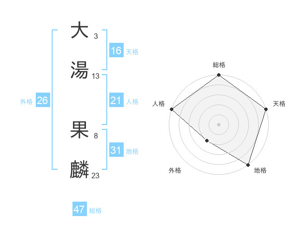 大湯 果麟さんを姓名の画数から五運を鑑定