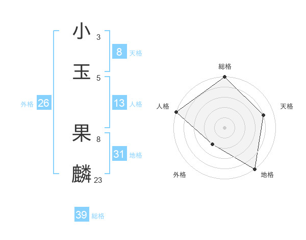 小玉 果麟さんを姓名の画数から五運を鑑定
