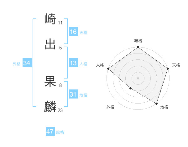 崎出 果麟さんを姓名の画数から五運を鑑定