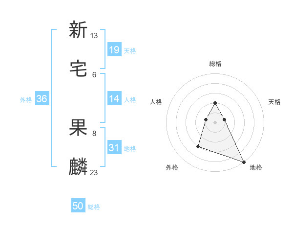 新宅 果麟さんを姓名の画数から五運を鑑定