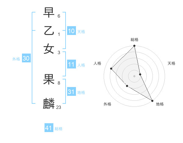 早乙女 果麟さんを姓名の画数から五運を鑑定