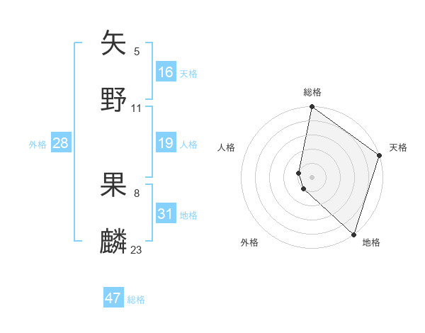 矢野 果麟さんを姓名の画数から五運を鑑定
