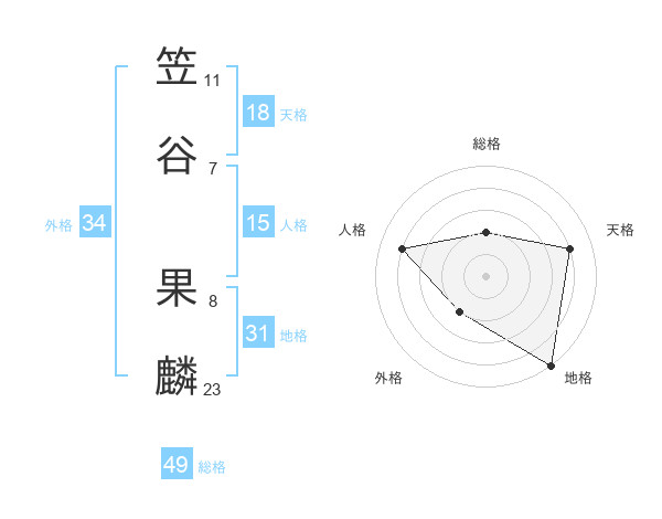 笠谷 果麟さんを姓名の画数から五運を鑑定