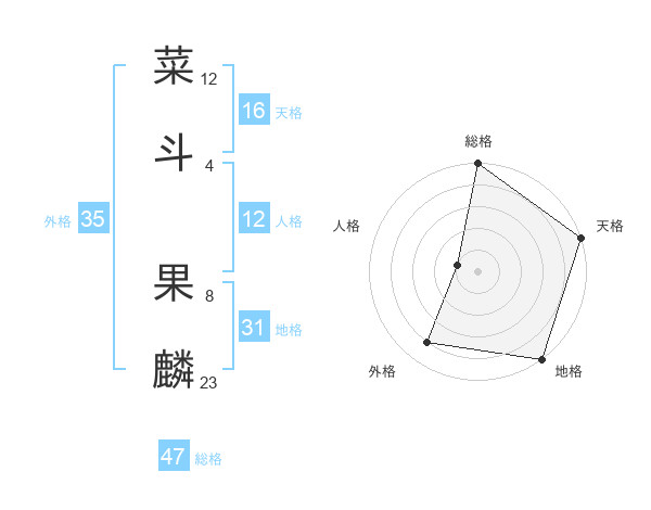 菜斗 果麟さんを姓名の画数から五運を鑑定