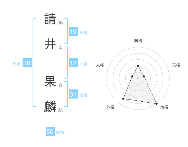 請井 果麟さんの外格は38画の4点!